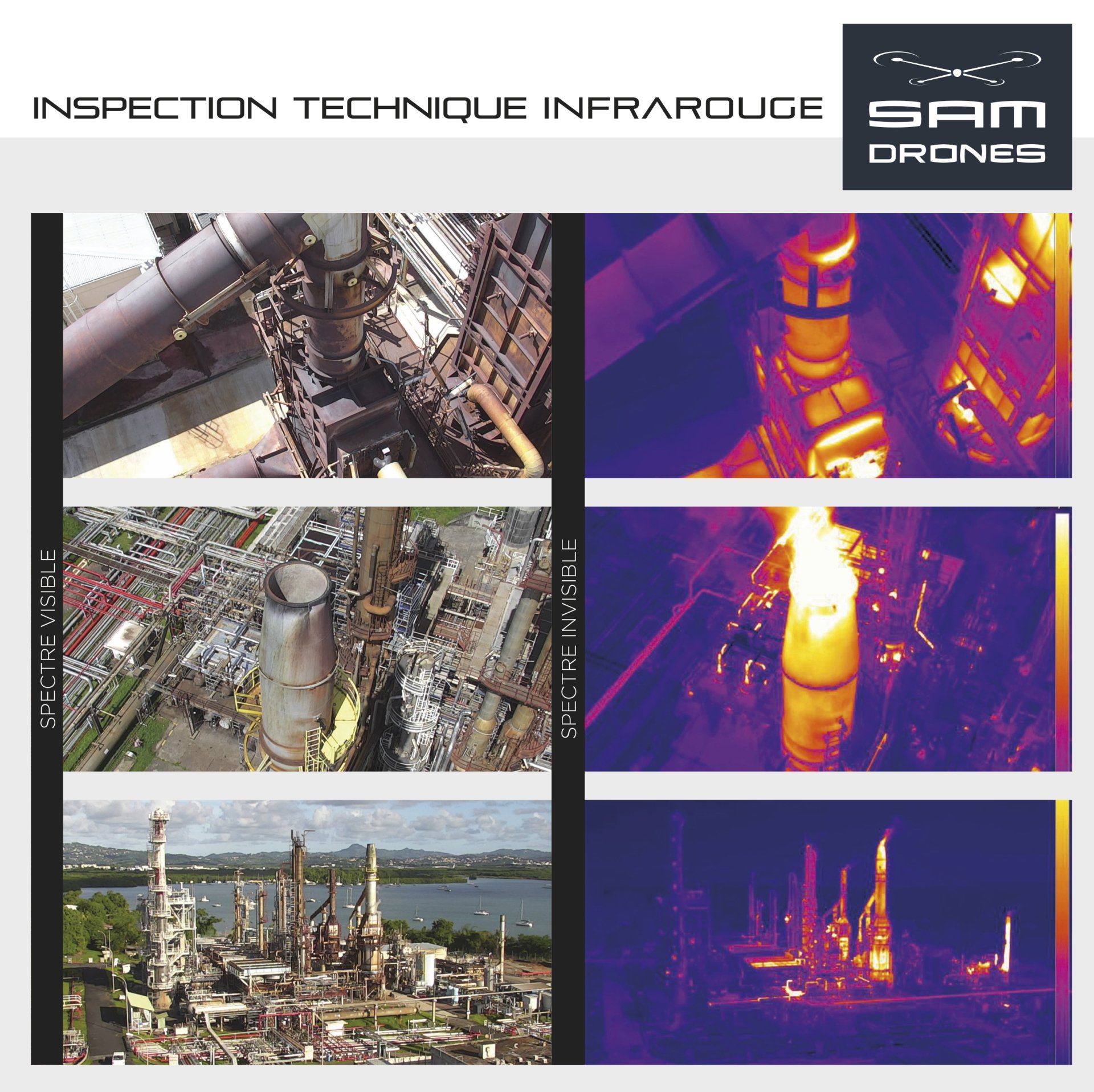 Le drone, c'est inspecter à distance grâce à une technologie embarquée pointue et l’utilisation de caméras. Obtenir des informations en utilisant une caméra de type Z30 pour voir à plus de 30 mètres et observer l’invisible avec une caméra thermique radiométrique.